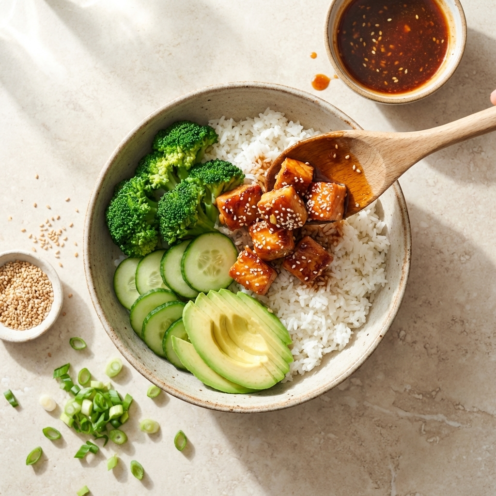 Swap note: Cauliflower rice, quinoa, or brown rice all work as the base. Edamame, shredded carrots, or snap peas are great additions if you want more crunch.